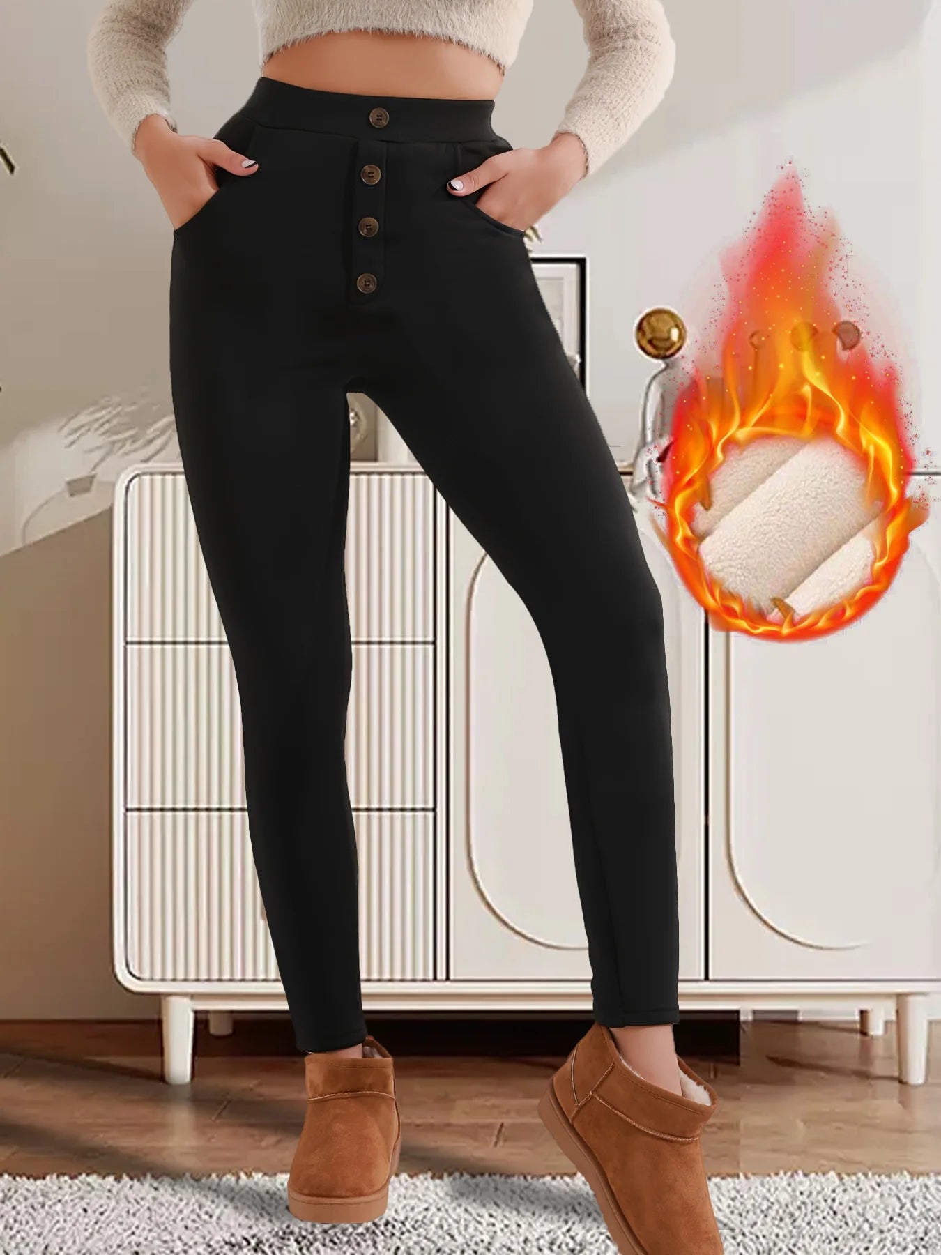 1 piece of warm high waisted buttoned leggings slim fit and slimming/casual pants with pocket design pants