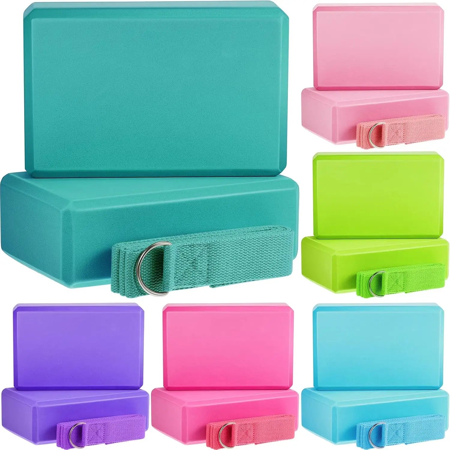 18 Pcs Yoga Block and Strap Set 9 x 6 x 3 Inch EVA Foam/Non Slip Brick 8 ft Yoga Straps for Stretching D Ring Design