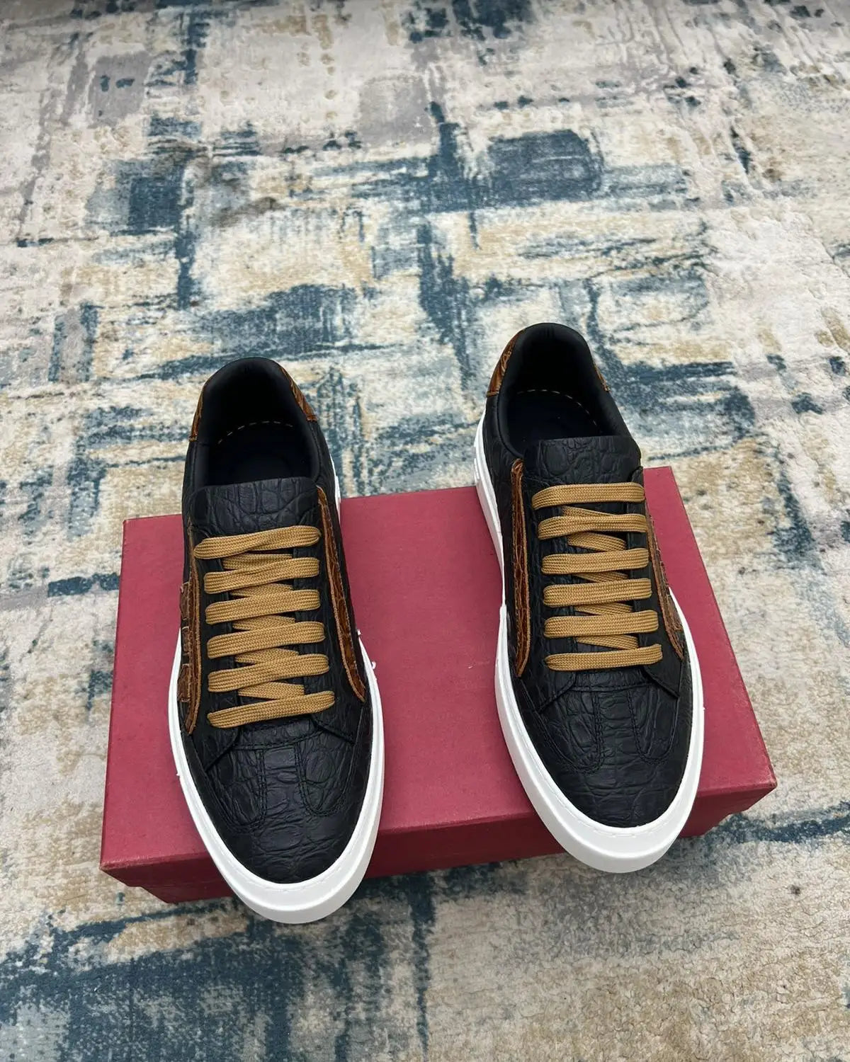 2026 New Arrival Men's Genuine Leather Board Shoes/Low Top Platform Sole Lace Up British Style for Daily Use