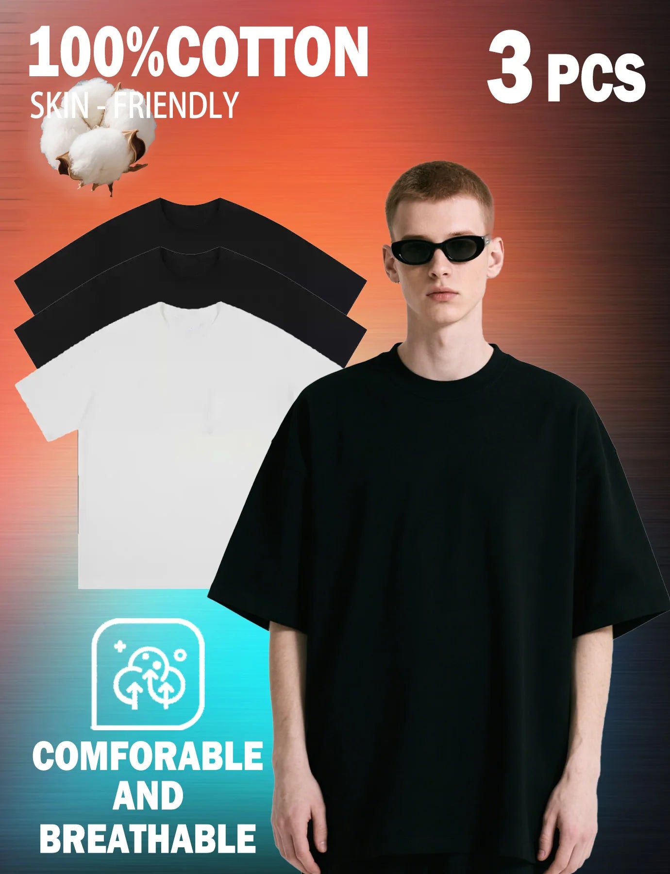3-Piece Men's T-Shirt Set, 220 Gram Cotton Heavyweight/American Men's Apparel Available in Black and White.