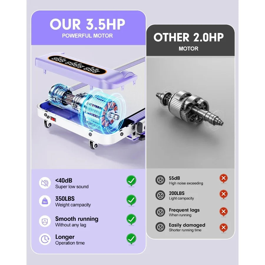 Portable Walking Pad Treadmill for Home Use with 10 Incline and 3.5HP Motor/Low Noise Design Foldable Fitness Equipment