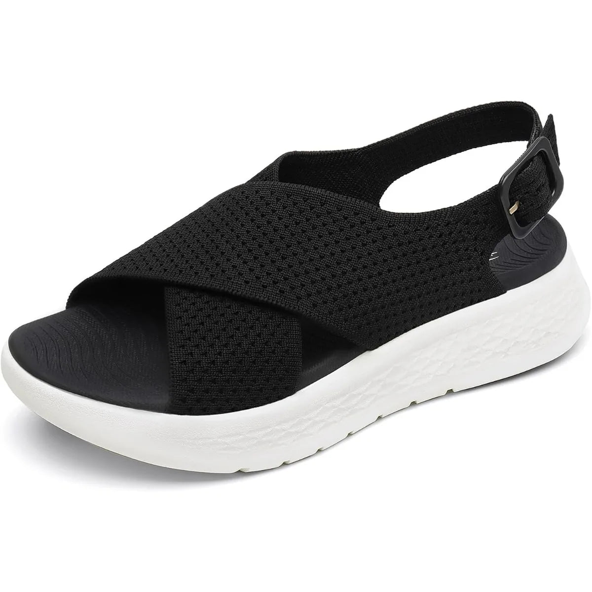 Breathable Upper: Women's sport sandals feature a densely woven mesh upper, with a cross strap design for good wrapping and breathability, and an adjustable back strap for a more snug fit