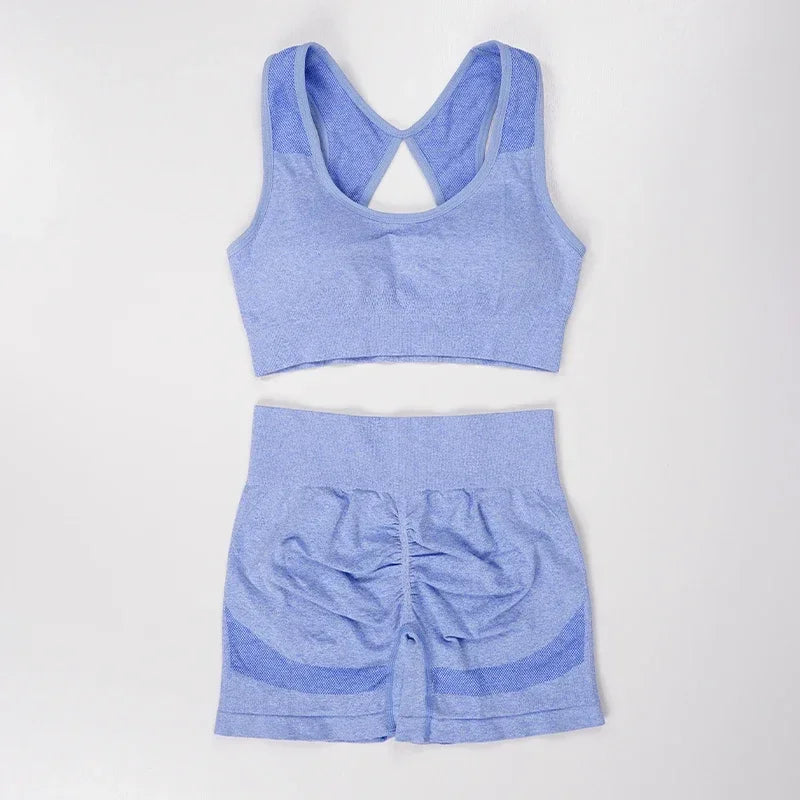 2 Pcs Yoga Set Women Hollow Back Sports Bra+Hip Lifting Sports Shorts/Workout Set Seamless Fitness Gym Set Sportswear Tracksuit