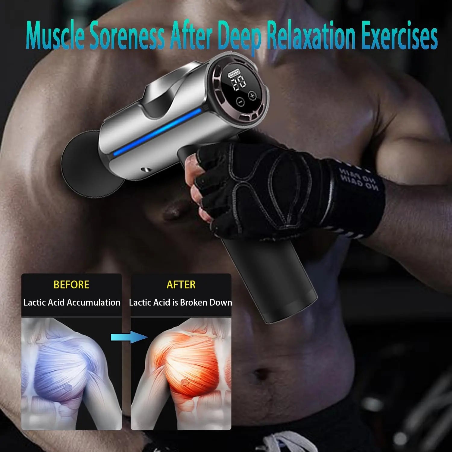 Christmas Gift for Women/Men Percussion Massage Gun/with 20 Speeds, LED Screen, Carry Case Silver