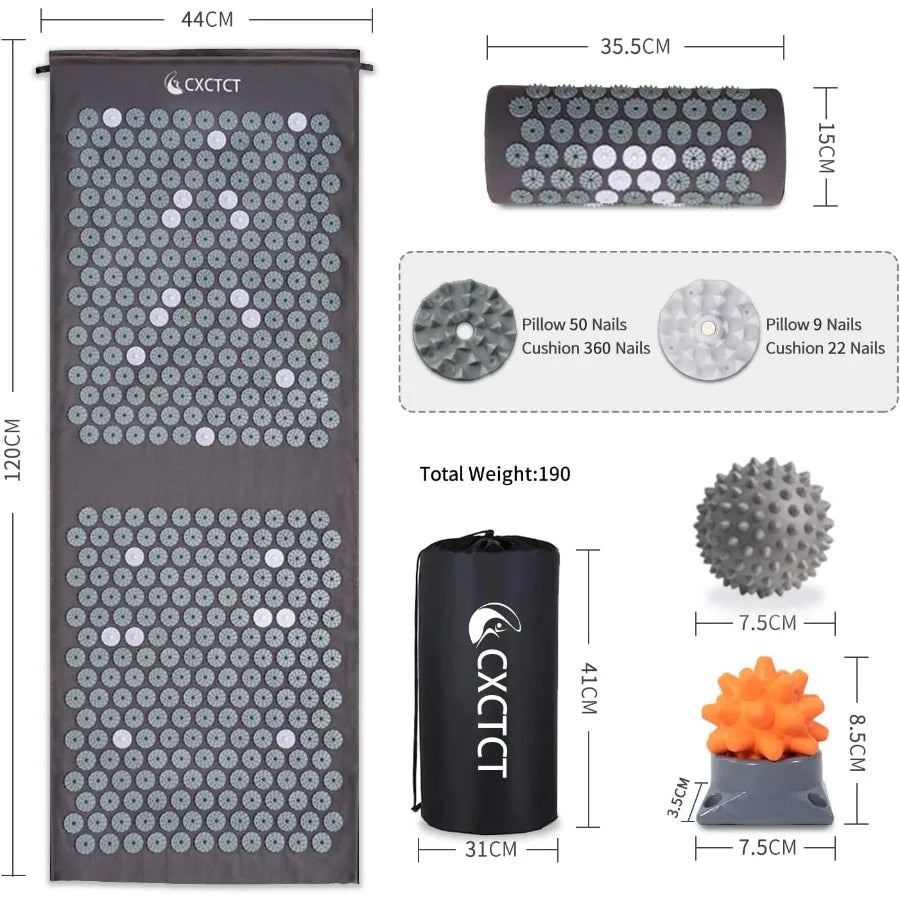 Extra Long Yoga Acupressure Mat Set for Back and Neck Pain Relief/Large Magnetic Acupressure Body Mat with Pillow