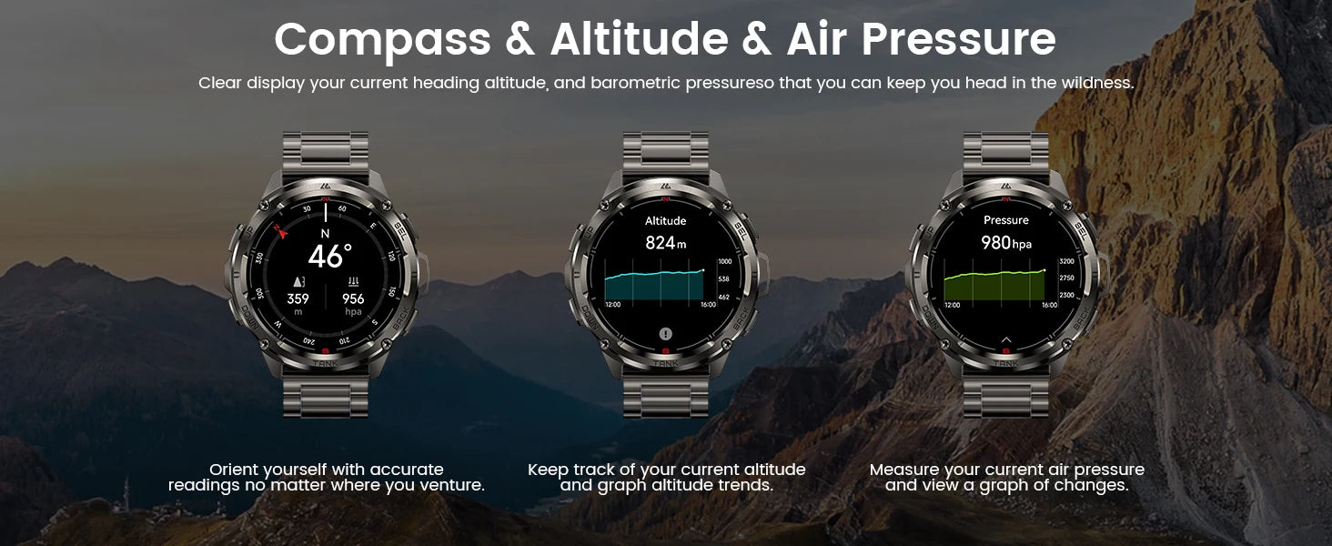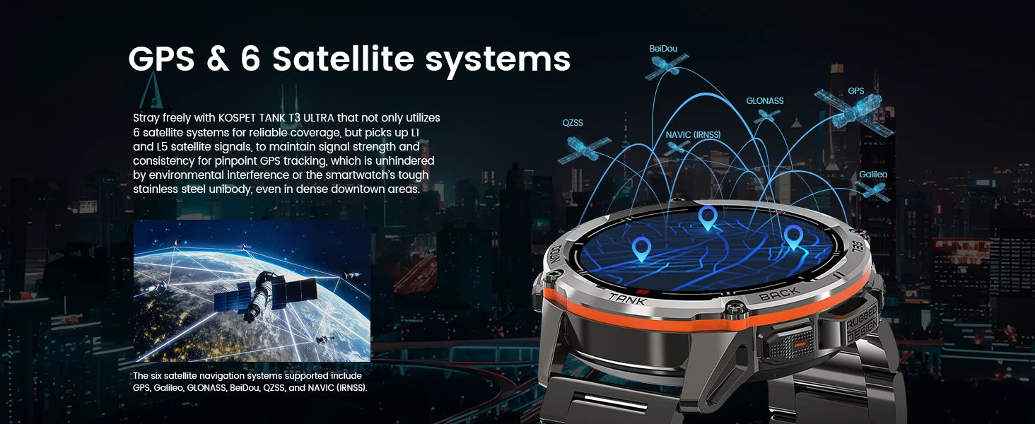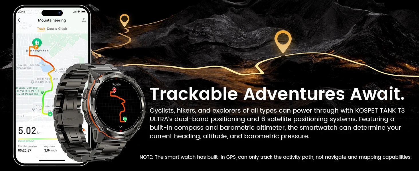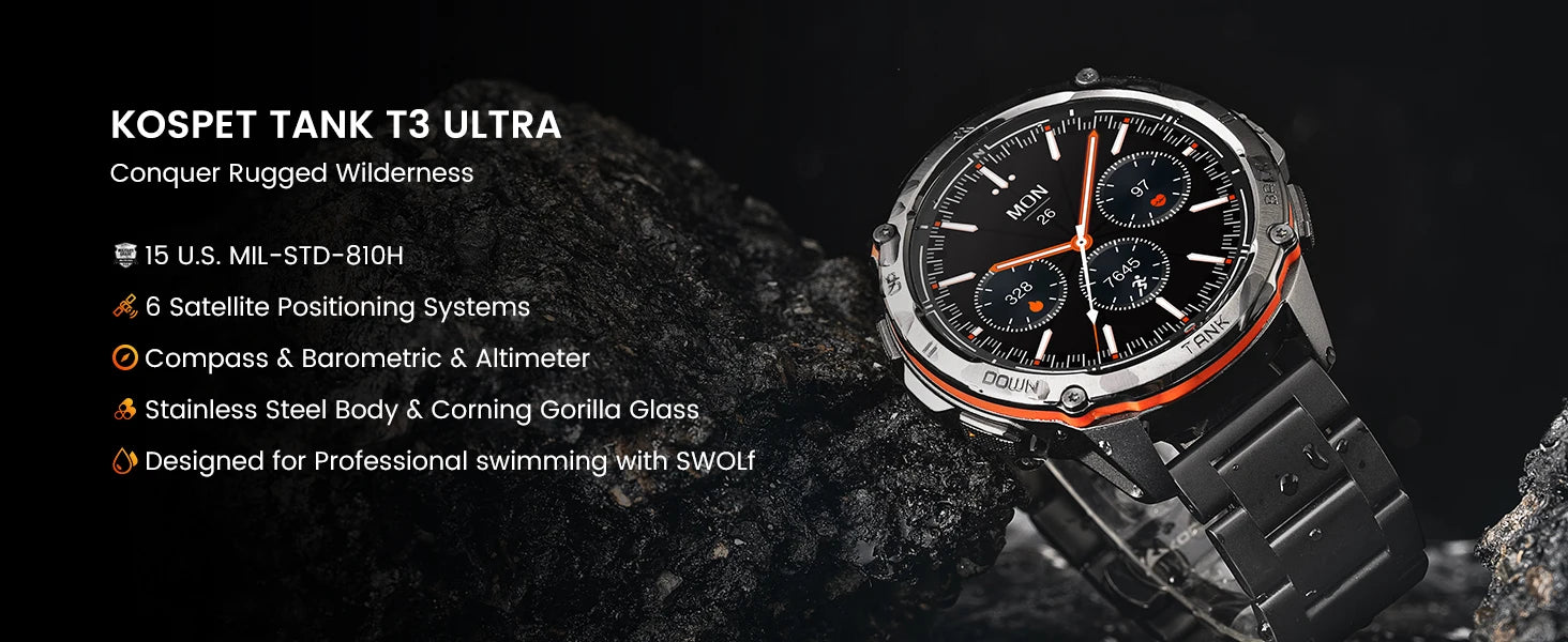 KOSPET TANK T3 Ultra GPS Smart Watch For Men Altimeter Compass/Barometric 470mAh 60 Days Battery Bluetooth Call IP69K Waterproof