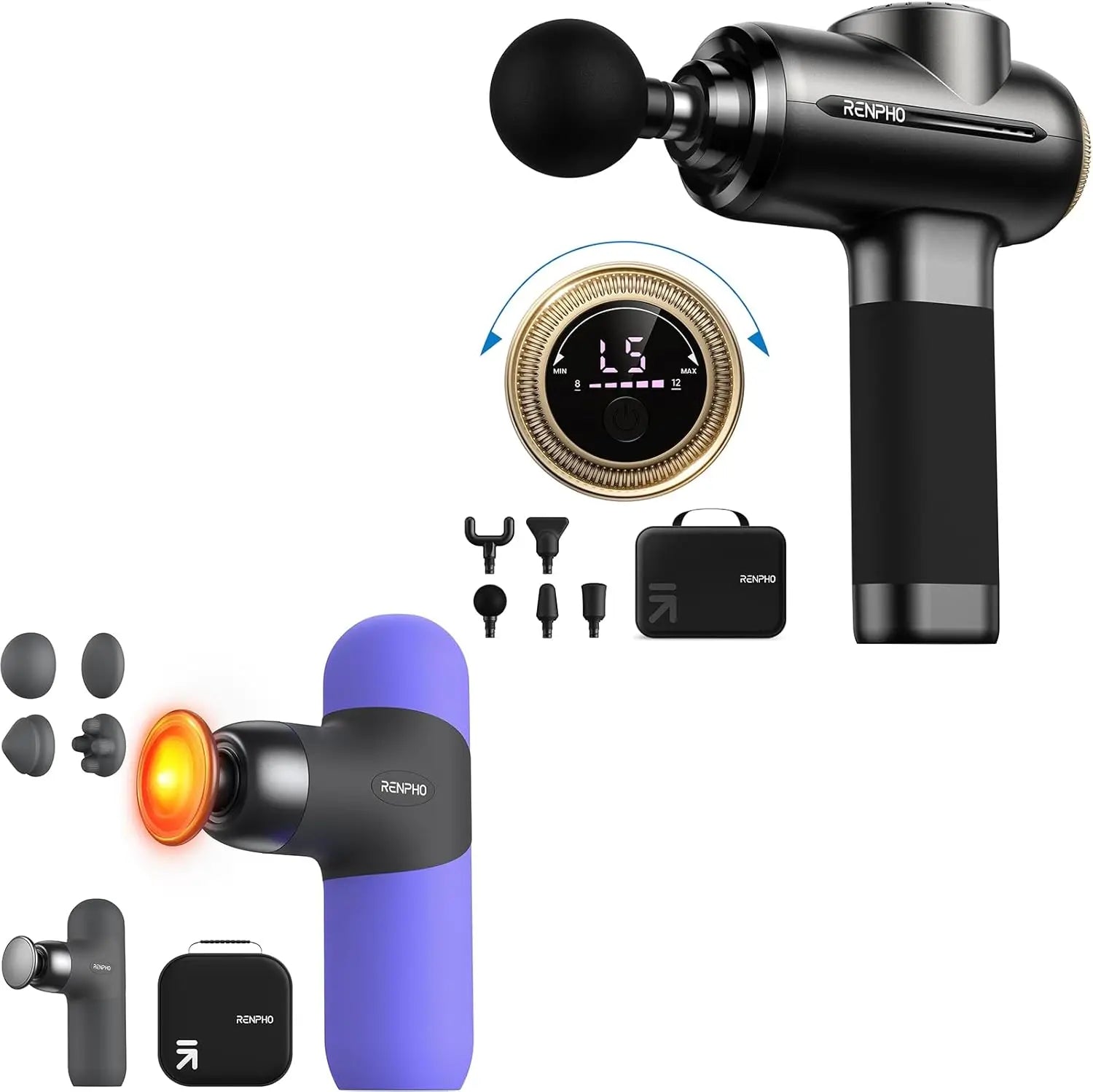 Massage Gun with 8-12mm Adjustable Amplitude/Mini Thermal Massage Gun with Heat