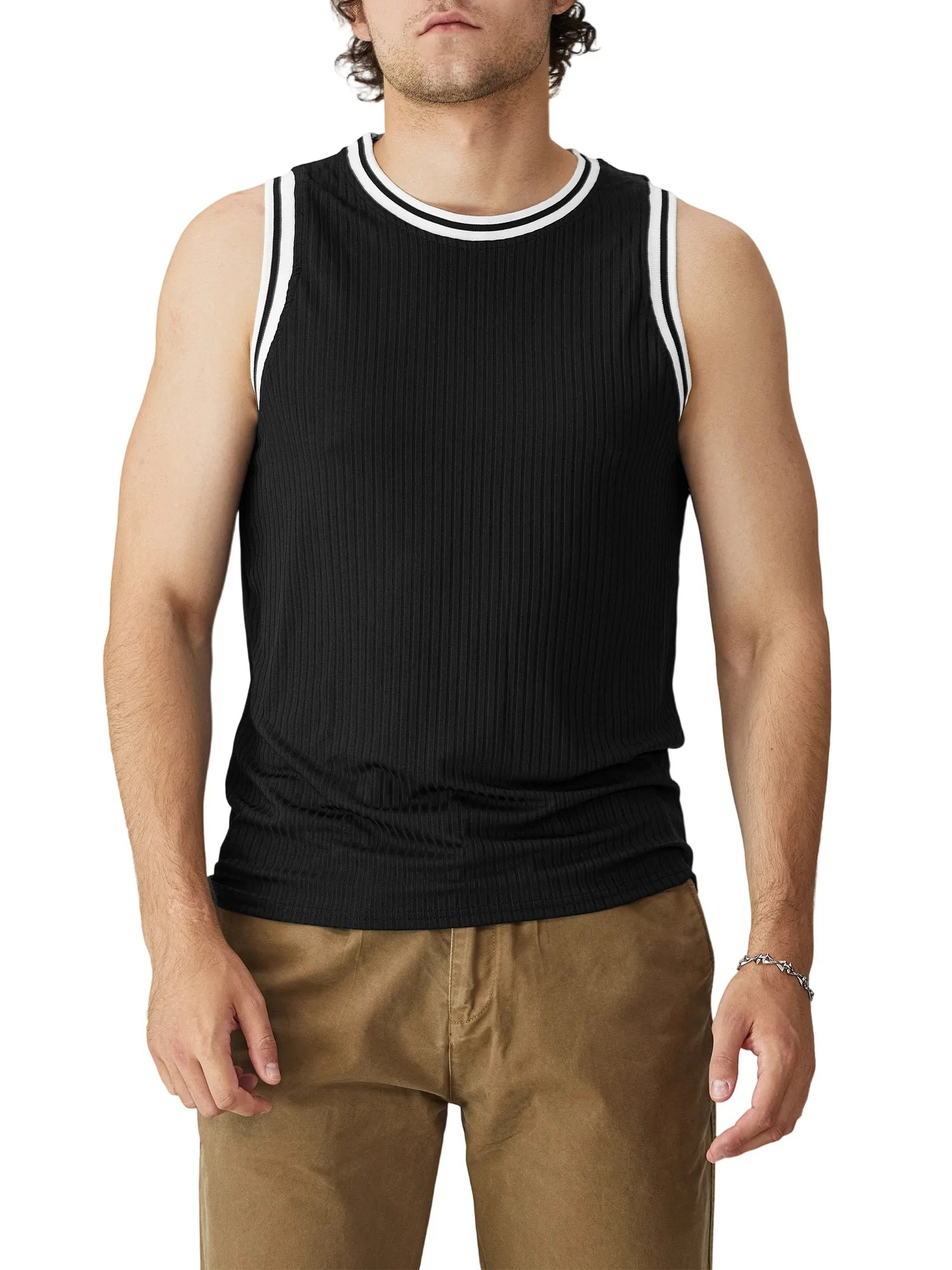 Men s Fit Ribbed Tank Tops Sleeveless Round Neck Muscle/T Shirts Gym Workout Tops for Summer