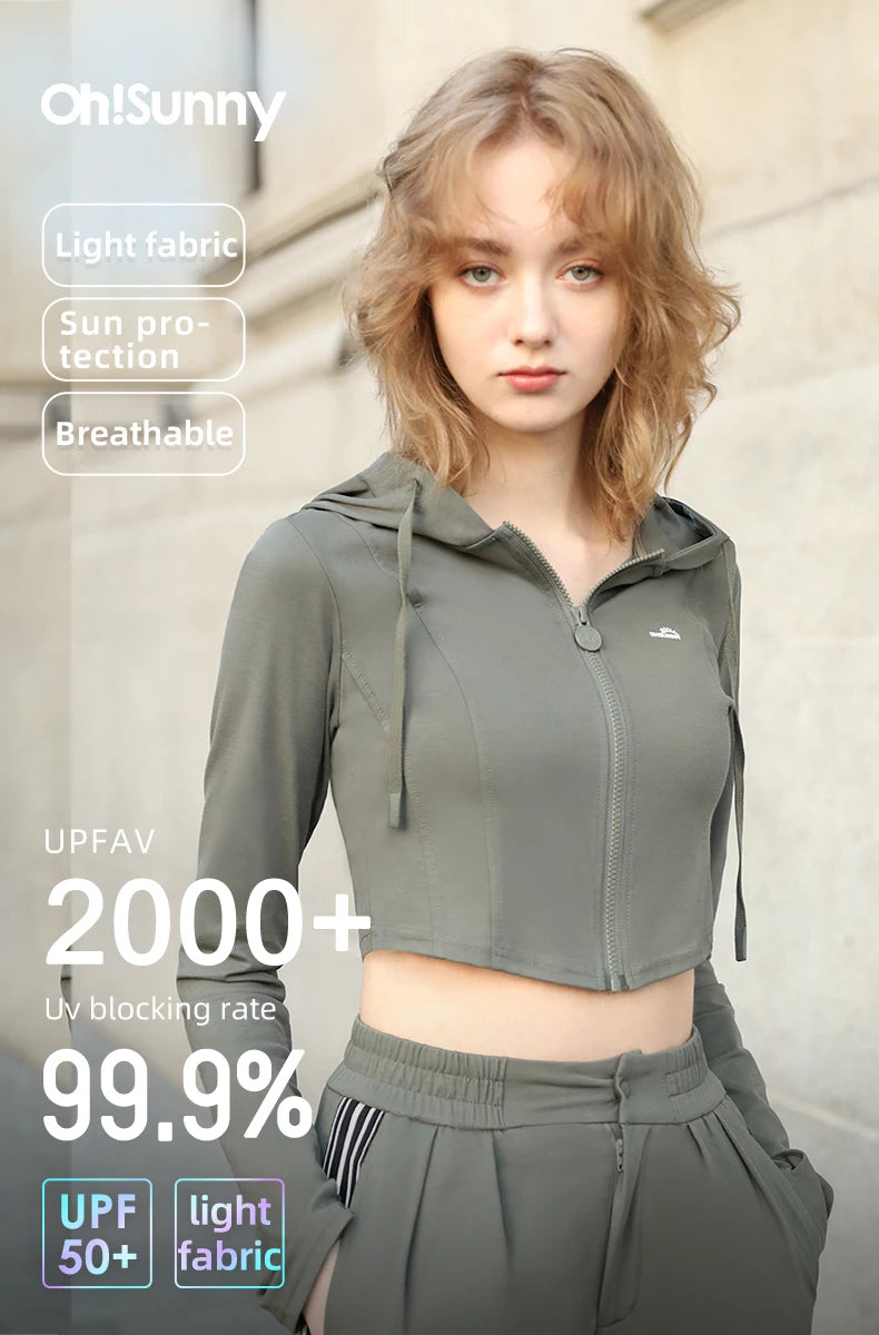OhSunny Running Jacket for Women Summer UV Coat Fitness Top/Bomber Stretch Slim Clothing Sports Long-sleeved Hoodie Short