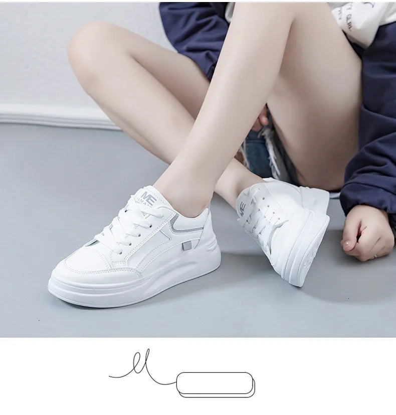 Outdoor Women Walking Shoes Skateboarding Shoes Women Sneakers/PU Leather Lace-Up Breathable Jogging Casual Sneakers