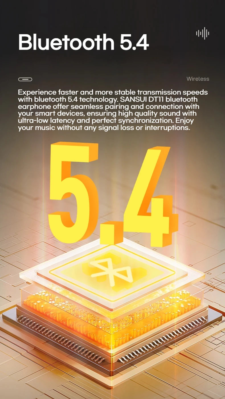 Sansui DT11 ANC Wireless Bluetooth 5.4 Headphone -45dB/Active Noise Reduction Headsets 50H Playtime Over Ear Retro Earphones