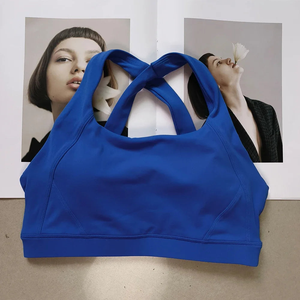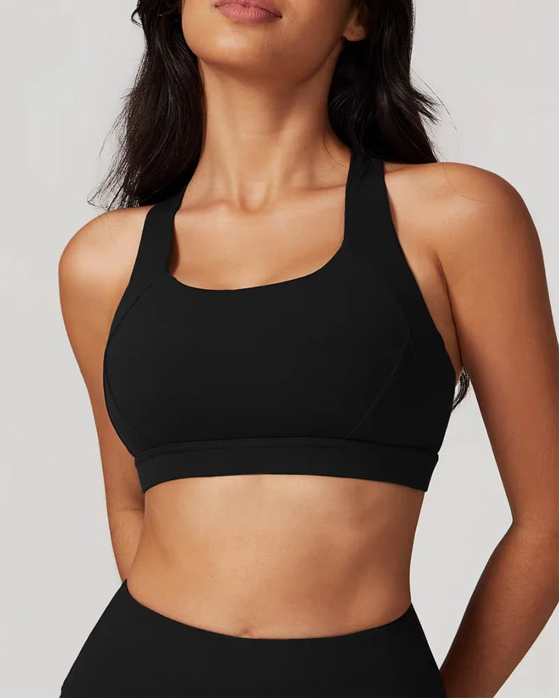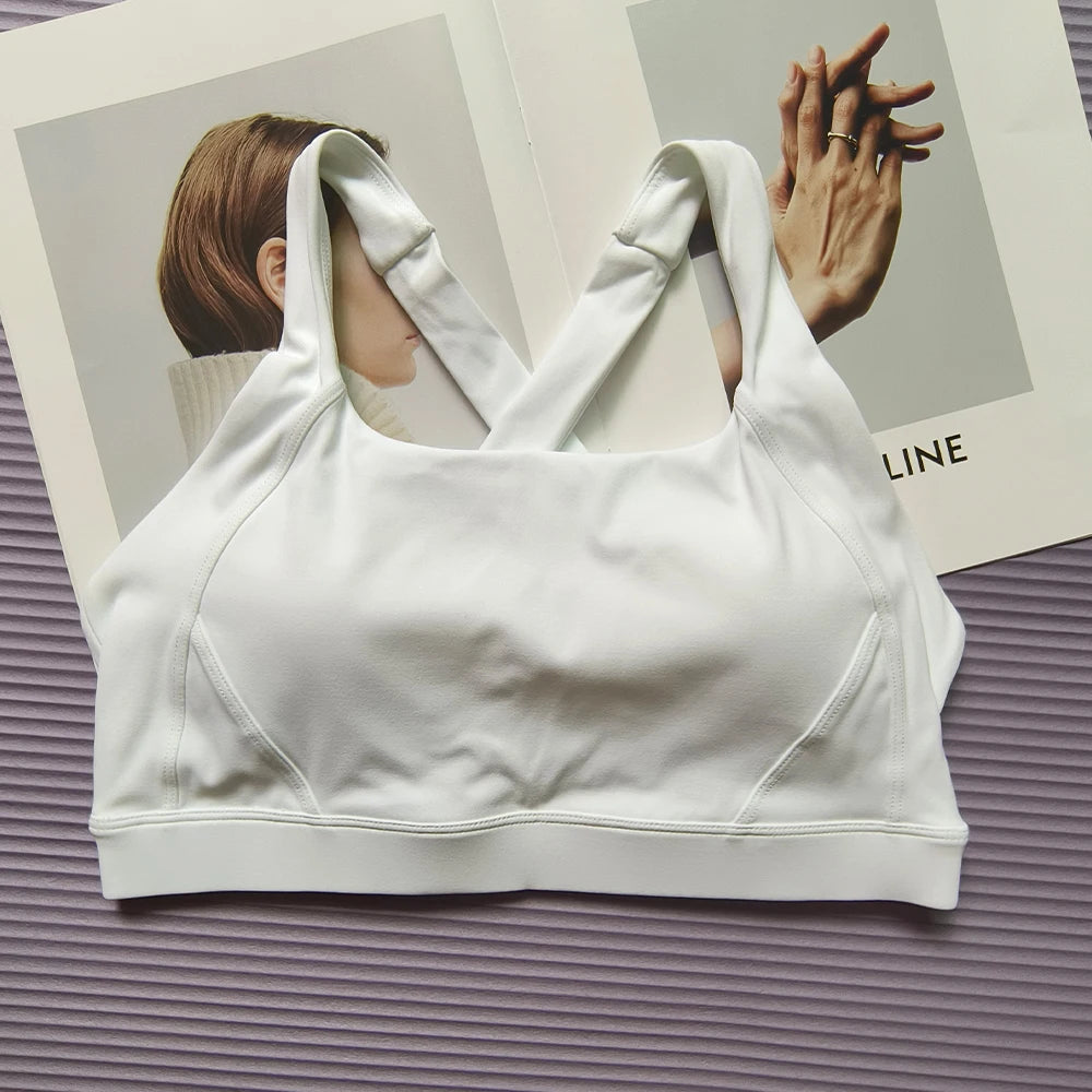 Solid color cross back sports bra quick drying shock-absorbing/Pilates yoga vest running and fitness bra