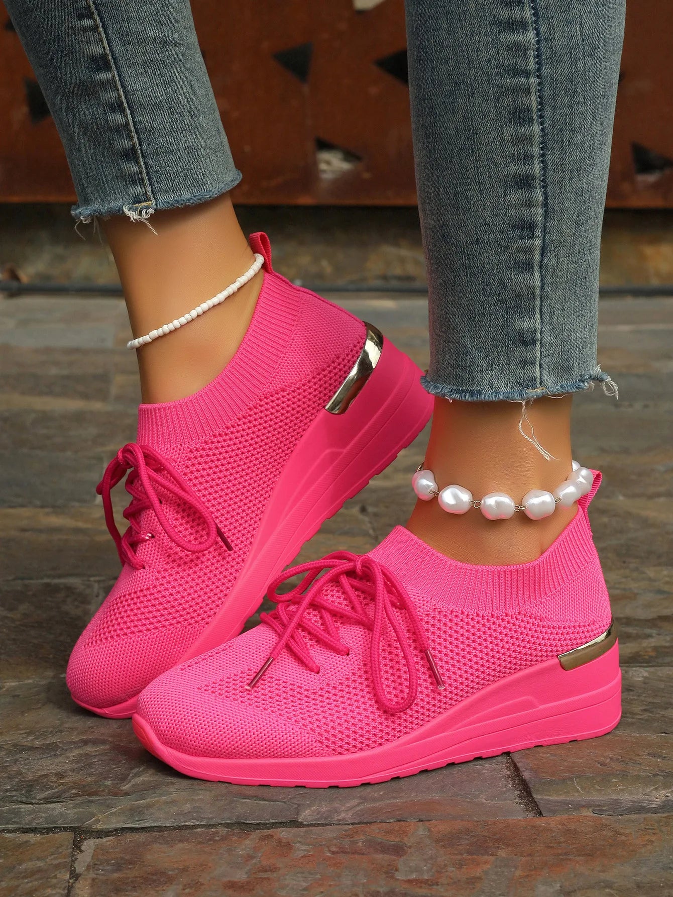 Spring Orange Casual Shoes Breathable Lightweight Wedge Sneakers Women/Woman Slip On Comfortable Outdoors Mesh Sports Shoes