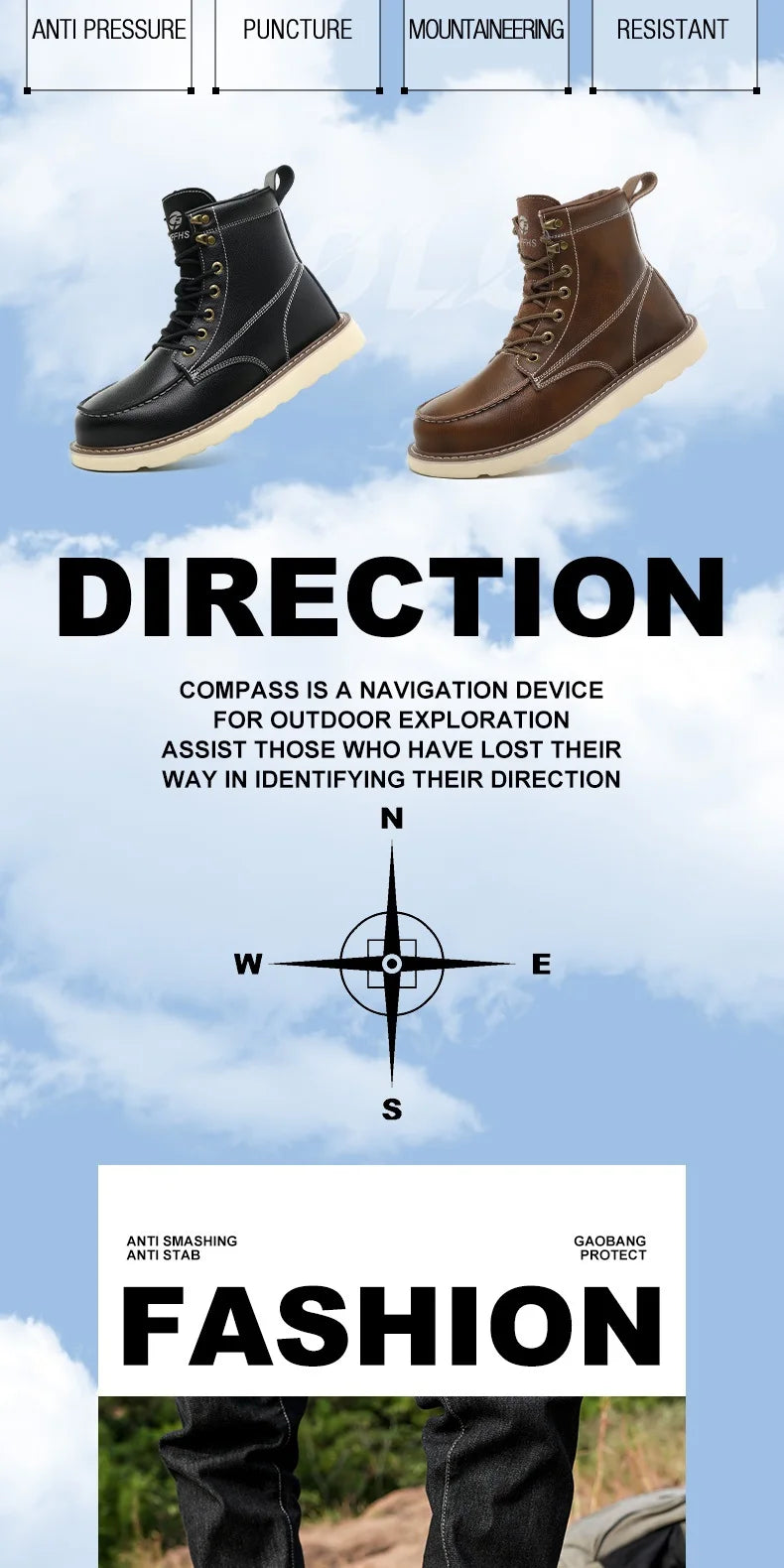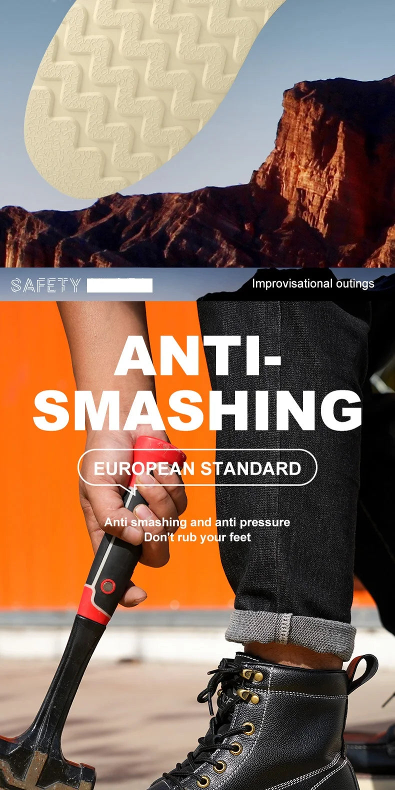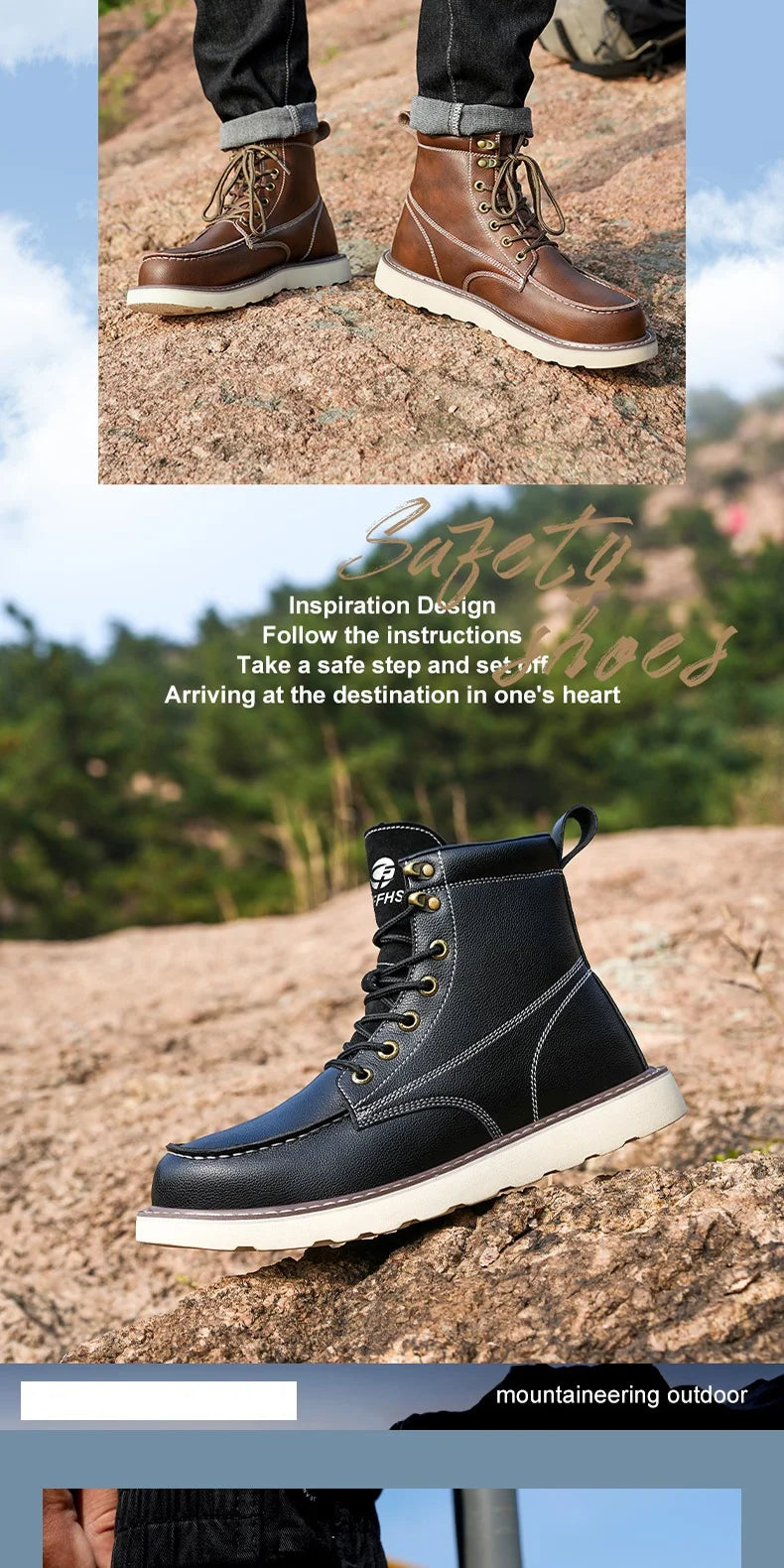 Two layer cowhide men's anti-smash/anti-puncture high top work safety shoes