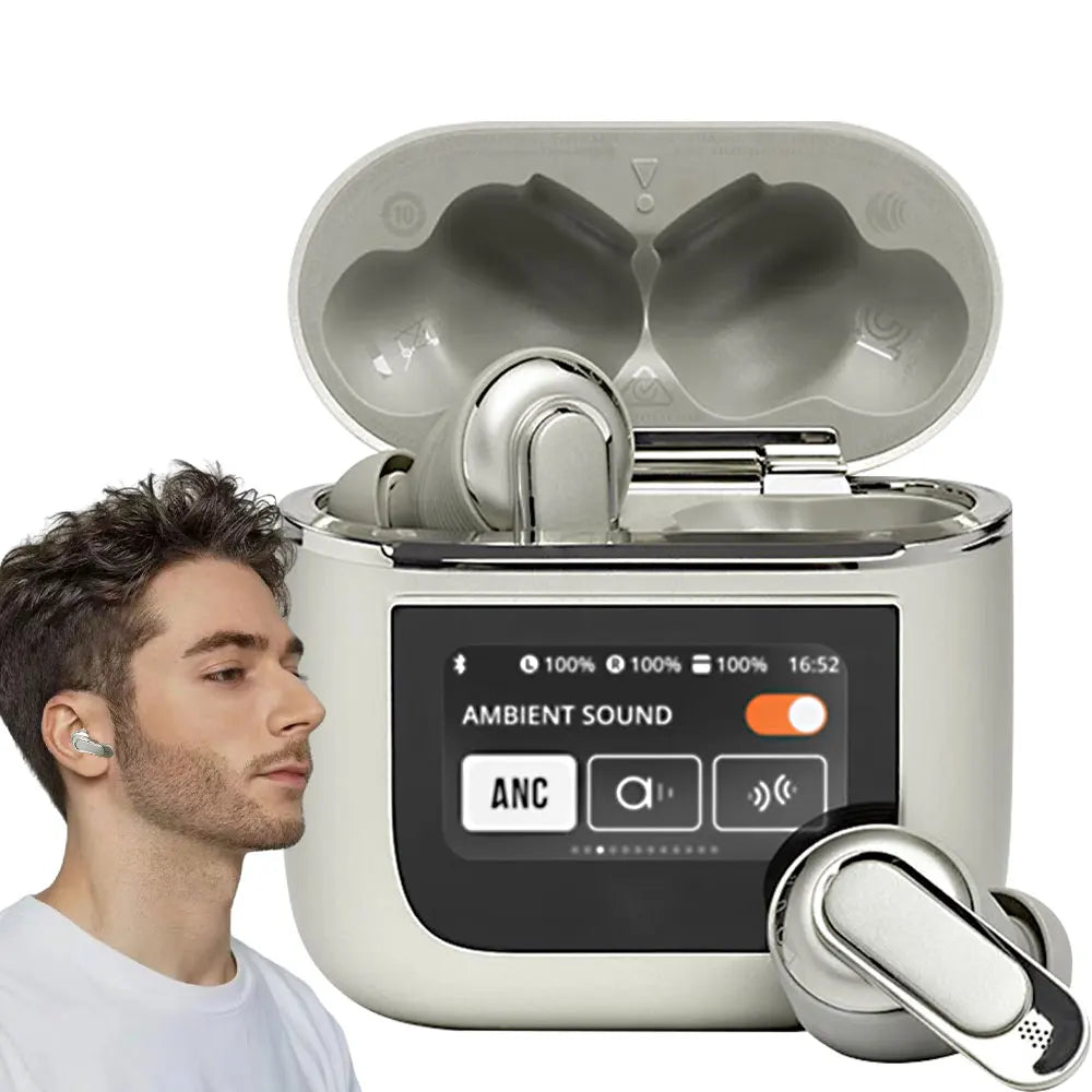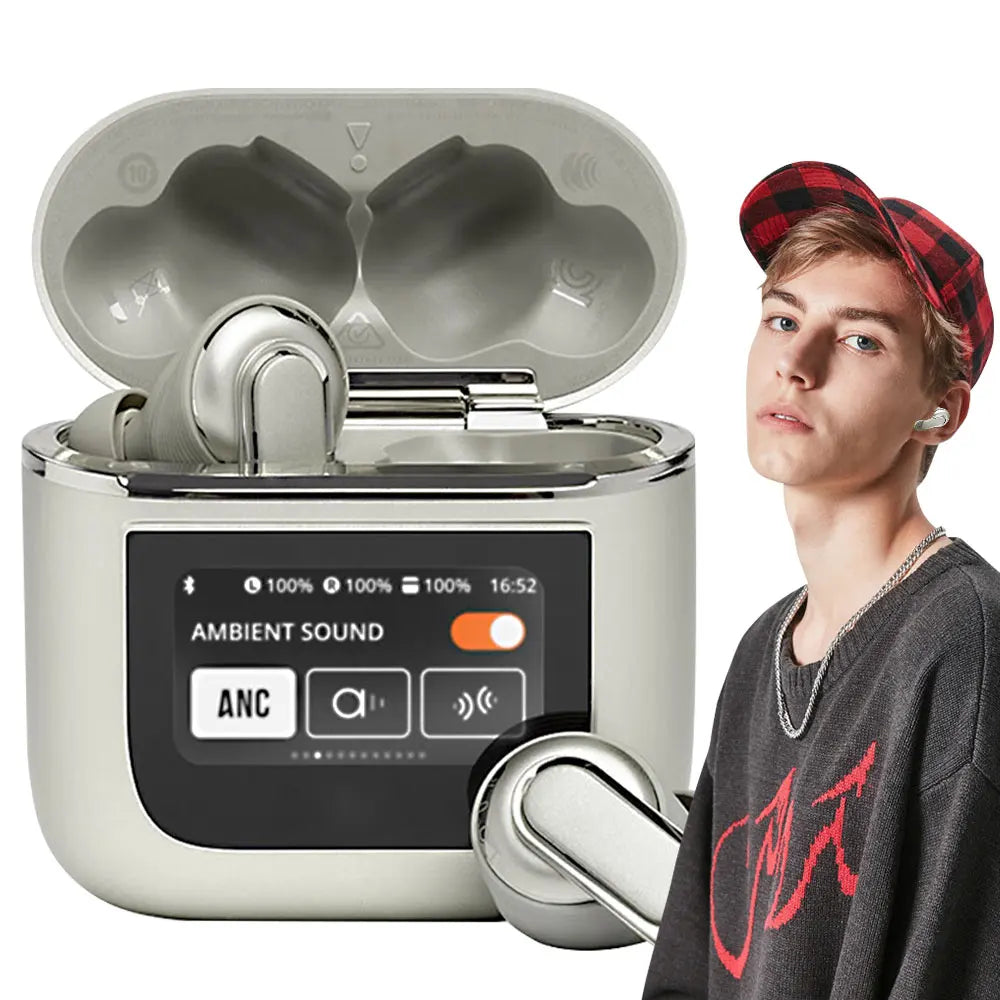 V8 Earphones Bluetooth 5.3 LCD Touch Screen Wireless Headphones/ANC Headset Cancellation Headphones 6Mic ENC HD Call TWS Earbuds
