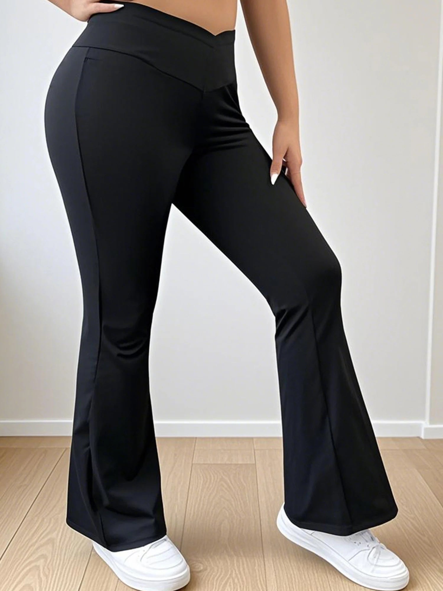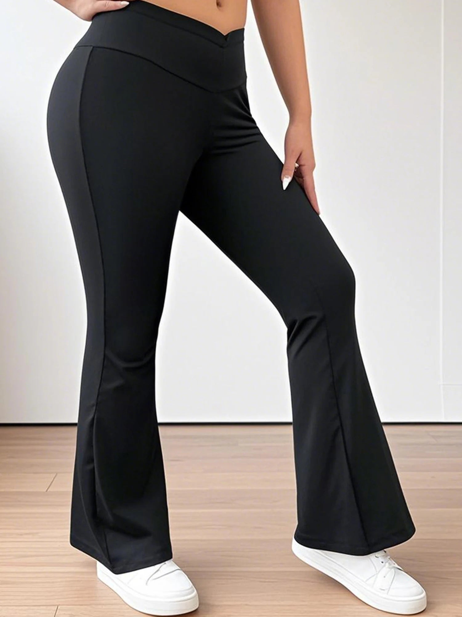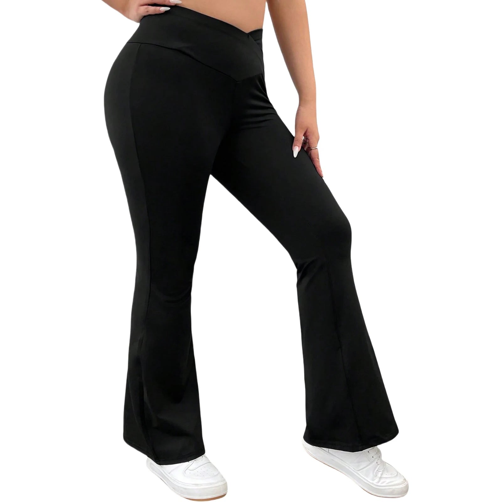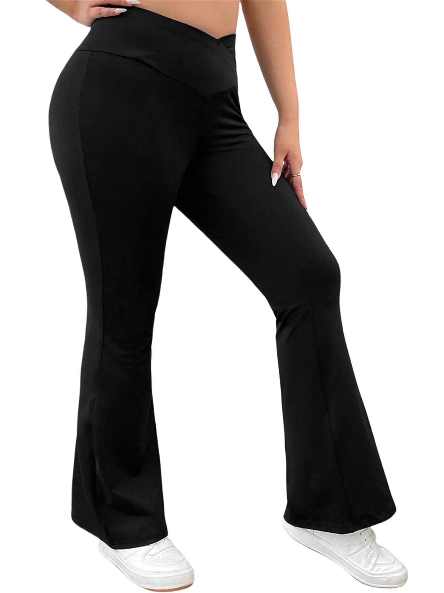 Women Plus Size High Waist Wide Leg Palazzo Pants Solid Color/Loose Fit Casual Long Trousers with Pockets