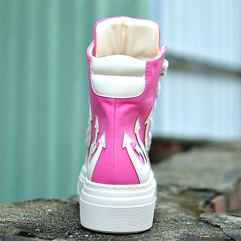 Women's High Top Flame Sports Shoes Wide Lace Up Casual Sneakers/For Woman Flat Platform Ladies Embroider Sneakers Girls Tennis